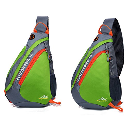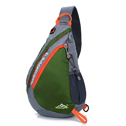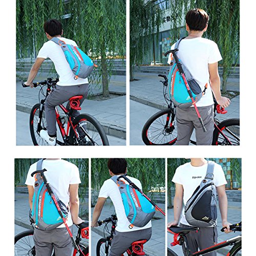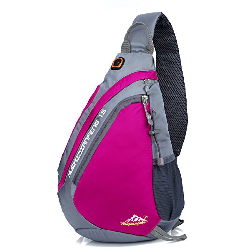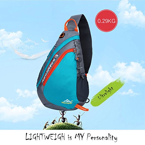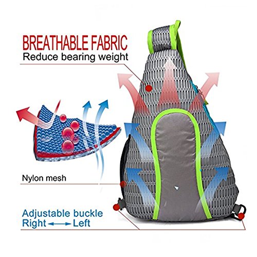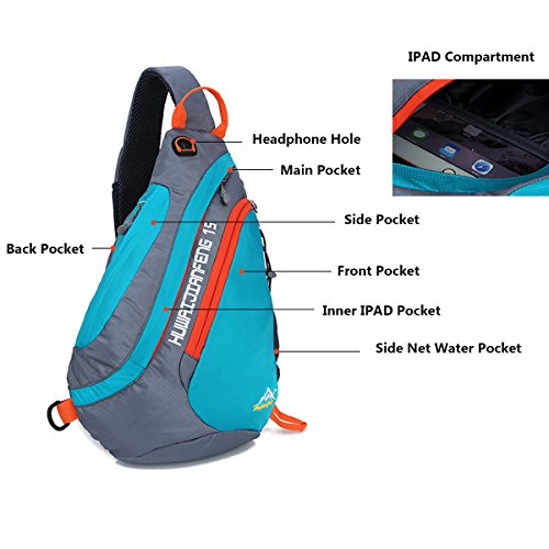 -. Feature : NEW DESIGN SLING BAG - the sling bag is light but durable. Adults and children fit very well. Wearing the bag with the thickening shoulder strap is very comfortable, the pressure is reduced on the shoulder. The back of the bag is 3D decompression reducing the tiredness if the packing is heavy. Children no longer feel hot by the breath-active net design on the back. / WATER & TEAR RESISTANT MATERIAL- the sling backpack is made of high quality water repellent tear resistant polyester. The Sturdy SNS metal zippers and reinforced seams & stitches, delicate sewing craft ensure your excellent outdoor experience. / MULTI-FUNCTIONAL 5 POCKETS -1 front pocket, 1 main pocket, 1 briefcase, 1 side pocket and 1 shoulder strap pocket. The front pocket holds small items like cellphones etc. The bag for writing utensils is on the back. Inner pocket for books or Ipad. There is a hole in the top bag to through headphones. The side pocket be used as water bottle holder(the biggest diameter is 3.1"). The shoulder strap compartment (size: 3" x 5.5") can be filled with small objects (not big enough to fit iphone6 .) / DIMENSION OF THE SLING BAG- Size: 17.3" x 5" x 11.4" (L x W x H) Weight: 7oz Volume: 19 Liter. (Please understand that we measure the length by hand, there may error within 1 inch.) / MULTIPURPOSE USE: this bag also can be used as a chest bag, shoulder bag. Perfect for cycling, day trip, day hike, day of sight-seeing, travel, camping, shopping, school and work.