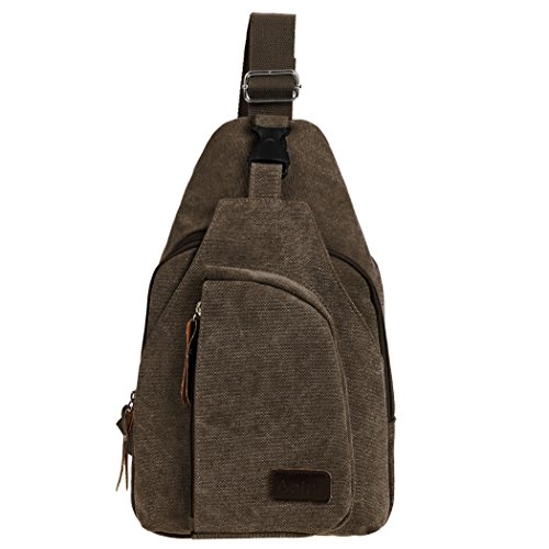 -. Feature : Dimension: 6.6 x 3.9 x 11.7inch (L x W x H),. Ideal option for outdoor sports (hiking,camping,climbing,cycling etc) and daily life use as well. / Made of high density canvas fabric and durable metal hardware. / Fit most of Mobile phone,keys ,wallet ,ID card and other Small personal belongings. / Fashion,Simple,and practical design and comfortable to wear. / Vintage Canvas bag with multiple pockets and adjustable padded shoulder straps for carrying comfort.