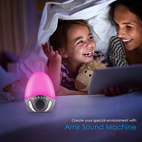 AMIR White Noise Sound Machine, Natural Sleep, Safe ABS+PP, Eye Caring Nursery LED Light, Baby Night Light,Deep Sleep Relax Machine Bedside Lamp for Living Room, Bedroom (Battery Operated)