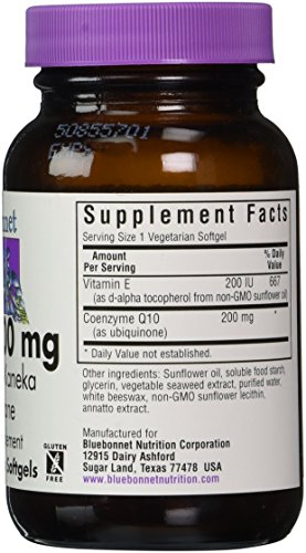 -. Binding : Health and Beauty -. Brand : Blue Bonnet -. Color : Parent -. IsAdultProduct : 0 -. Label : Bluebonnet -. LegalDisclaimer : These statements have not been evaluated by the Food & Drug Administration. This products is not intended to diagnose, cure, mitigate, treat, or prevent any disease. -. Manufacturer : Bluebonnet -. PackageQuantity : 1 -. ProductGroup : Health and Beauty -. ProductTypeName : HEALTH_PERSONAL_CARE -. Publisher : Bluebonnet -. Studio : Bluebonnet -. Title : COQ10 200 mg ( 30 and 60 SoftGels ) Bluebonnet