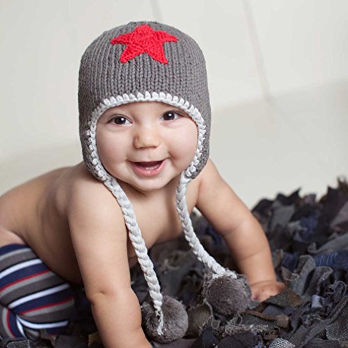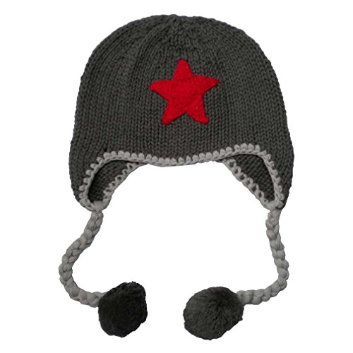 -. Binding : Apparel -. Brand : Huggalugs -. Color : Grey -. Department : baby-boys -. Feature : Dark grey beanie hat trimmed in Light Grey with a Red Star and Grey pom poms. / 100% Cotton / Earflap style with ties to stay in place. / Available in sizes to fit infants, toddlers and kids / Wonderful as a gift - use for photo prop -. Model : 755 -. NumberOfItems : 1 -. PackageQuantity : 1 -. ProductGroup : Apparel -. ProductTypeName : HAT -. Title : Huggalugs Boys or Girls Red Star Earflap Beanie Hat