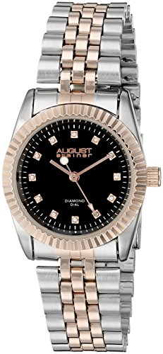 -. Binding : Watch -. Brand : August Steiner -. Color : Black/Gold/Silver -. Department : womens -. EAN : 0848572044561 -. Feature : 12 genuine diamond hour markers on the black dial with gold-tone accents / Silver-tone and gold-tone case and bracelet / Japanese-quartz movement / Case diameter: 31mm / Water resistant to 33 feet -. IsAdultProduct : 0 -. Label : August Steiner -. Manufacturer : August Steiner -. Model : AS8046TTR -. MPN : AS8046TTR -. PackageQuantity : 1 -. PartNumber : AS8046TTR -. ProductGroup : Watch -. ProductTypeName : WATCH -. Publisher : August Steiner -. Studio : August Steiner -. Title : August Steiner Women's AS8046TTR Analog Display Japanese Quartz Two Tone Watch -. UPC : 848572044561