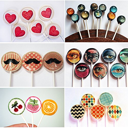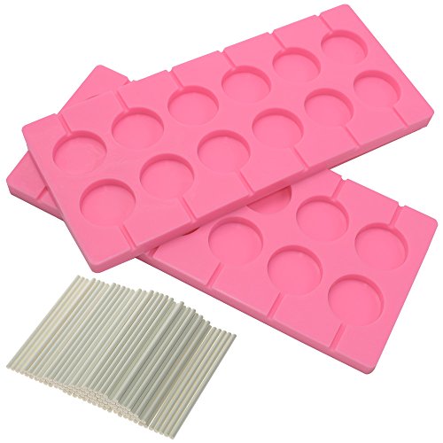 BIGTEDDY - 2x 12-Capacity Round Chocolate Hard Candy Silicone Lollipop Molds with 100 count 4 inch Lollypop Sucker Sticks for Halloween Christmas Parties