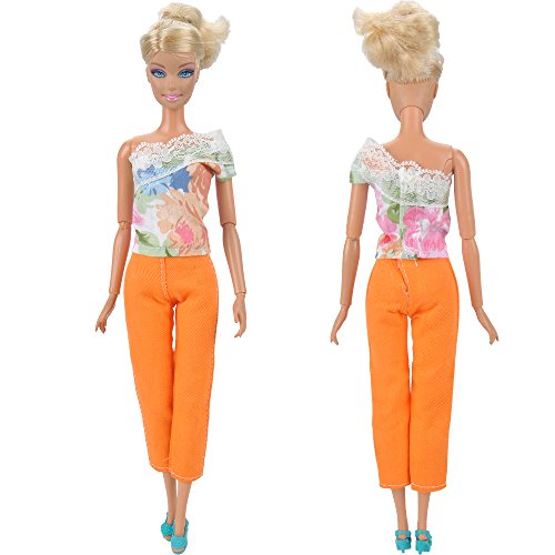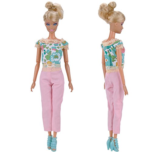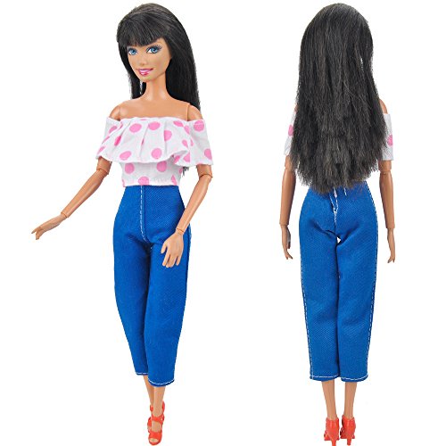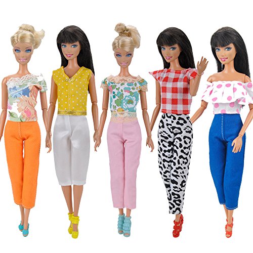 -. Title : E-TING 5 Set Doll Clothes Outfit 5 Tops 5 Trousers Pants for Barbie Doll Picture Style