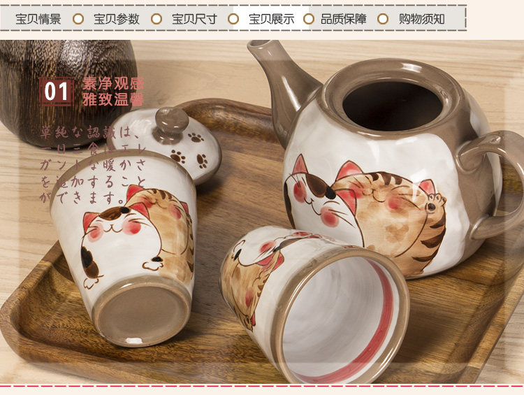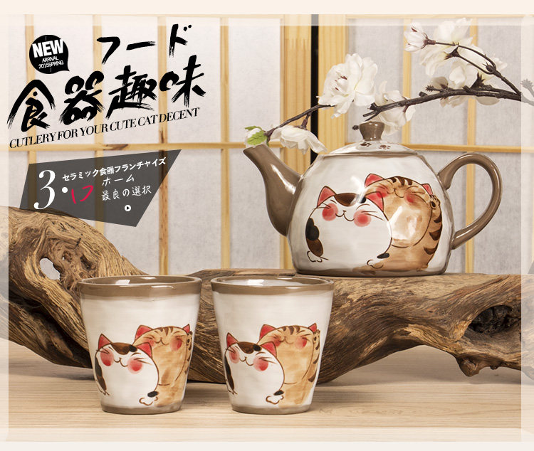 日式茶具一壶两杯 陶瓷茶壶茶杯功夫茶 手绘复古可爱和风杯子