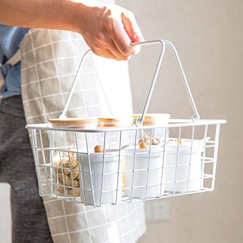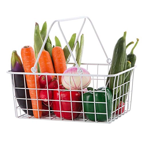 Wire Freezer Laundry Storage Basket with Handle,White and Small