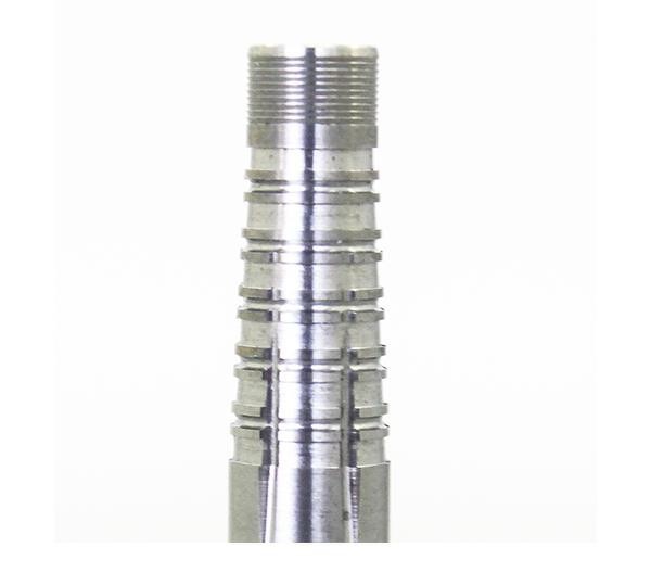 | グリップ部分の形状をストレート・テーパー・ストレートと配置して、テーパー部分を14mmと親指幅程にする事により、ここしかないというグリップ位置と絶妙なグリップ感を実現。重心はセンターやや前で18.5gという重さをしっかり感じながら飛ばす事ができ、バレル後方をグリップする方であれば、どのようなグリップでもしっくりはまり、クセがなく人を選ばないまさにオールラウンドといえるバレルです。 |