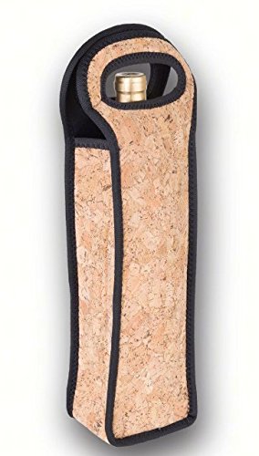 Zees Inc The Cool Sack-Neoprene Np113 Cork Wood Single Wine Bottle Tote, Multicolor