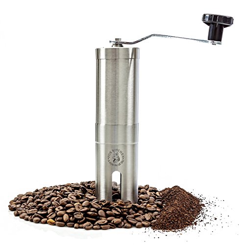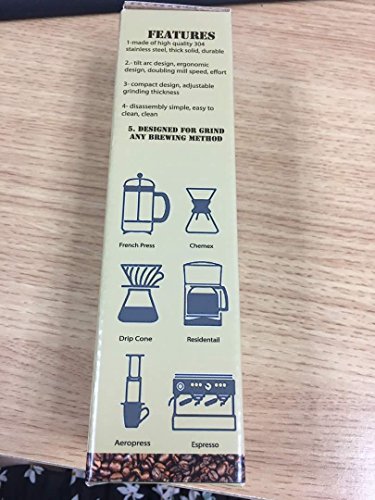 FOX PRIME 100 Ml Brushed Stainless Steel Manual Coffee Grinder Selected by the Illinois Institute of Technology as one of the 100 best designed products of modern times We are glad that you have decided to step up your coffee game with the best coffee grinder available We are happy to compare to Hario or Porlex! Coffee shops all over the world have known for years that the key to a great cup of coffee is to use freshly ground coffee beans and the best coffee maker Now thanks to the EZE Home goods Stainless Steel hand grinder, making coffee every bit as delicious in your own home is both easy and fast with the best burr grinder you can find! PROFESSIONAL GRADE - manual hand coffee bean grinder that achieves a consistent grind on any coffee beans. This can also be easily used as a spice grinder or herb grinder or anything else you want to hand grind. FAST GRIND - Due to reinforced extra long steel handle you can grind your cup in under a minute! CERAMIC BURRS - conical ceramic burr grinders have been proven to be quieter, last longer, rust-free and absorb less heat than other steel burrs or electric coffee grinders. DESIGNED TO FIT AEROPRESS (NOT INCLUDED) - For easy travel or camping - this portable mini unit is easy to take wherever you want to go. HIGH GRADE STAINLESS STEEL - Constructed for increased durability this hand crank coffee mill is built to last. SIMPLE TO ADJUST GRIND COARSENESS - No need to take the entire unit apart, simply one turn of the knob at the bottom allowing the best grind for either espresso coffee, french press coffee or any in between. To get started grinding the best coffee ever and producing a consistent great cup of coffee every time go just clickADD TO CART at the top of the page!