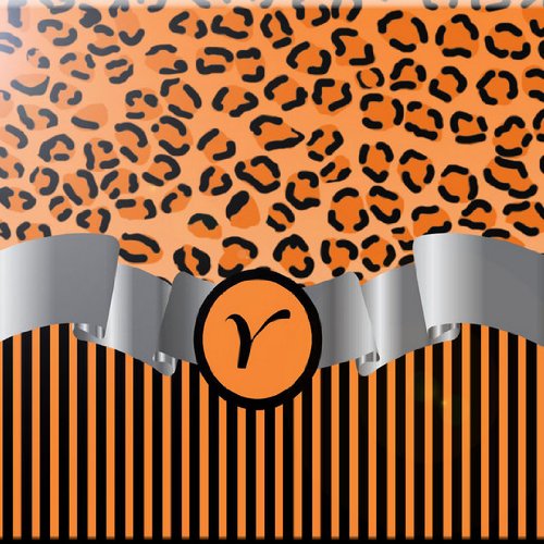 Rikki Knight RK-12intilec-2455 12" X 12" Letter "Y" Orange Leopard Print Stripes Monogram Design Ceramic Art Tile