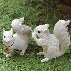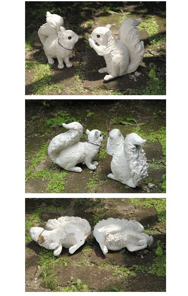 | つがいのリスが2匹で1セットになっています。何かおしゃべりをしているような佇まいがとても可愛らしい、物語の1ページのようなオーナメントです。2匹のうち1匹にアンティーク感が可愛いクローバーチャームがついています。 |