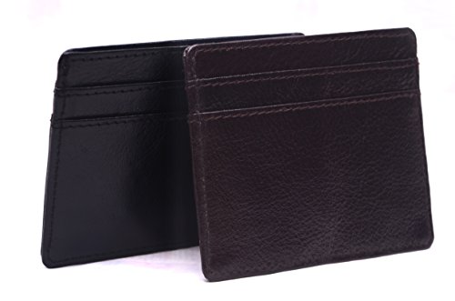ABOUT US - High fashion. Traditional craftsmanship. VMA Accessories embodies all these characteristics, producing exquisitely crafted goods for a thoroughly modern and dynamic man. VMA Accessories specialize in men's leather accessories.VMA Accessories leather-crafted products are constructed from High Quality 100% genuine leather, which ensures the high quality and durability of the product, for a longer endurance and better upholding. The variety to choose makes the Belts complement with any outfit to give you a sophisticated look and feel. Hate having a giant bulging wallet in your back pocket? This is the ONE you are looking for. Minimalist designed, slim and small, Bulk Storage, up to 6-7 cards and several cash notes, durable genuine leather, looks beautiful, feels great. It's a great front pocket wallet, a small compact card holder, enough for your daily use, walking around, light travel, nearby shopping. GENDER - Men Leather Credit Card case STYLE -Slim Genuine Leather Credit card wallet case - SLIM, LIGHTWEIGHT SMART. A classic style wallet that looks to hold all your cards and bills in one place and not looking too big. COLOR - Black and Chocolate Brown. Pls refer images for a better understanding (Due to the monitor and light difference, the color will be slightly different from the pictures) SIZE - (Closed) 4 inch x 3.4 inch Leather Type - 100 % Genuine Leather Wallet inside and out. INSIDE DETAILS: 2 Card pockets on both sides with 1 separation in between for holding your bills DESCRIPTION - Ultra thin - measures 4 x 2.75inch Lightweight - weighs 0.7 oz approx - literally light as a feather Hold 8 cards 2 versions for choices - Black and Cherry Brown 0