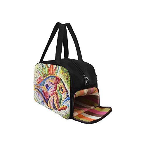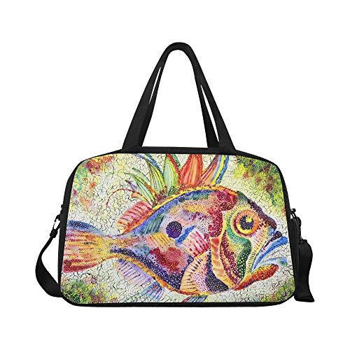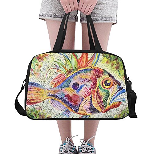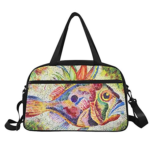 (InterestPrint)/Accessories/Luggage, Bags Travel/DIRECT FROM USA/InterestPrint Travel Duffel Tote Bag with Shoes Compartment for Women Men Fish Bright Stylize...