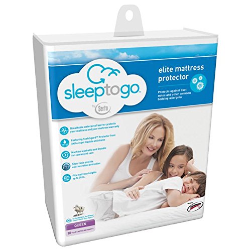 -. Brand : Serta -. Feature : Zip-off top allows for easy laundering, protector is water repellent & stain resistant / 100% polyster / Fits mattress heights of up to 16 Inch / Protects against common bedding allergens / Breathable Waterproof Barrier -. Label : Serta -. Manufacturer : Serta -. ProductGroup : Home -. ProductTypeName : HOME_BED_AND_BATH -. Publisher : Serta -. Studio : Serta -. Title : Serta STG Elite Mattress Protector