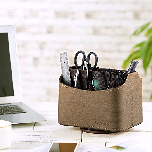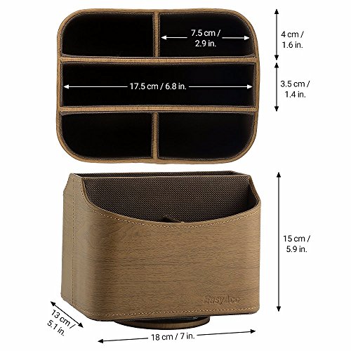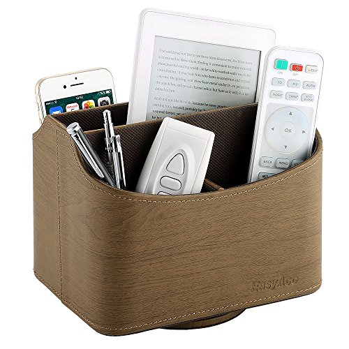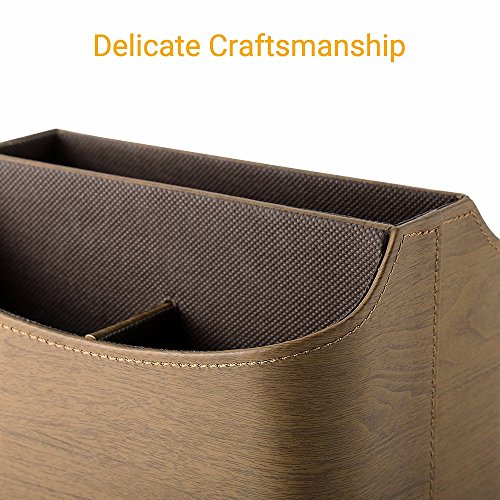 EasyAcc Remote Controller Holder Storage Container Rack Coffee Table 5 Compartments for TV Remote Phone iPad Book - PU Leather Brown