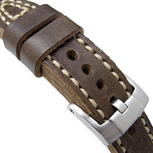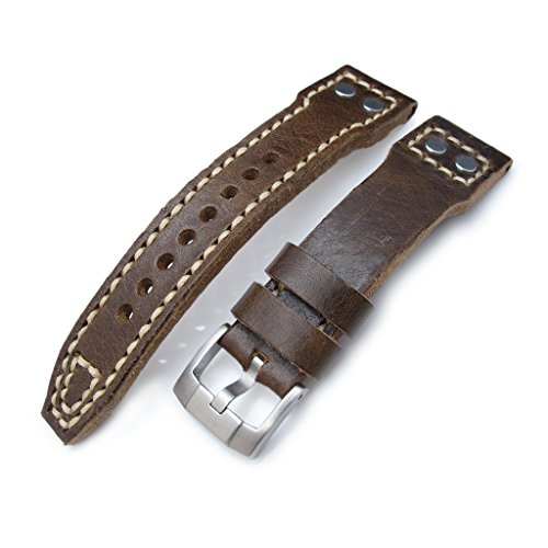 Studio : MiLTAT Publisher : MiLTAT Binding : Watch Product Description Waxed thread hand stitching on raw Italian leather for extended durability. This pull up aniline Italian leather has natural dye color characteristic, bend on it light color will through. Strap thickness approximately from 5mm down to 3.5mm, accompanied with IWC style pin buckle. Featuring two silver tone stainless steel rivets where the band meets the case. Vegetable Tanned Pull up aniline Italian leather lining adds a level of comfort ultimately to your wrist.