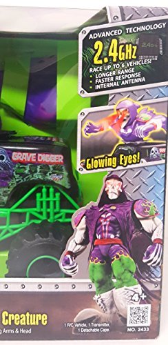 -. Feature : New Bright Radio Control 2.4GHZ / Grave Digger Carnage Creature / Moving Arms & Head, Glowing Eyes / Longer Range, Raster Response & Internal Antena / Race Up to 6 Vehicles,
