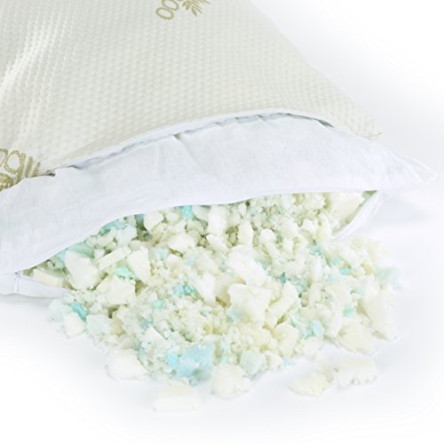 -. Feature : Adjustable pillow interior contains shredded visco foam trimmings. Visco foam is a superior material for long lasting pillow firmness, while still providing a plush surface for a restful sleep. Adjustable filling is removable and can be tailored to your personal preference of pillow thickness and heaviness. Pillow fillings are dust and mite resistant, to keep allergies at bay. / Bamboo pillow covers are micro-vented for increased ventilation and minimized sweat, allowing for a cool and refreshing night's sleep. / Adjustable pillows come in pack of 2, queen sized / Both adjustable shredded visco foam and bamboo cover are machine washable at 86 F. They cannot be ironed or bleached. They can be dry cleaned. / Pillows come in elegant Kuprum bag. It is suggested the adjustable shredded visco foam interior be aired out once removed from packaging.