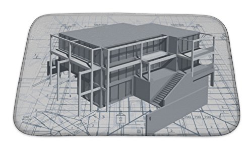 Gear New Architecture House with Blueprint Bath Rug Mat No Slip Microfiber Memory Foam
