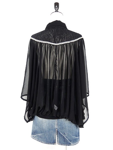 Ladies ブランド- カラー黒 メール便不可 コンディション★★★ 素材ポリエステル 表記サイズL スタッフコメントシースルー素材の為、透け感があります。 実寸サイズ 着丈 63 cm 袖丈 52 cm ラグラン袖の為、襟元から袖先までの計測 ※ウエスト・ヒップ以外は平置き採寸