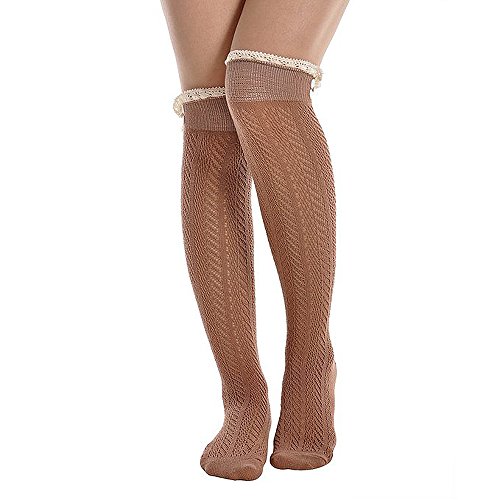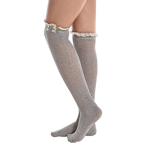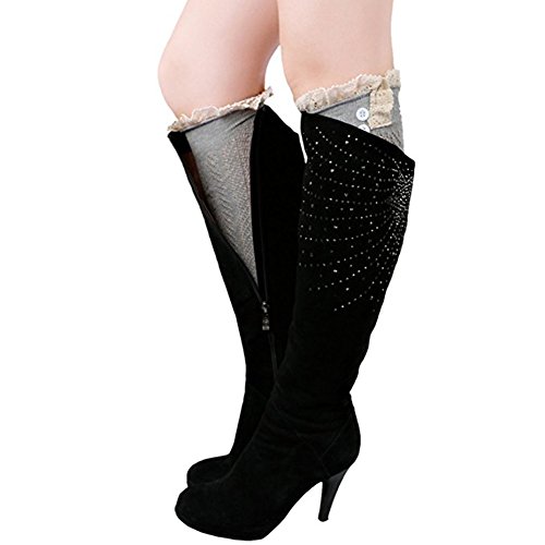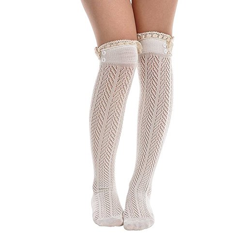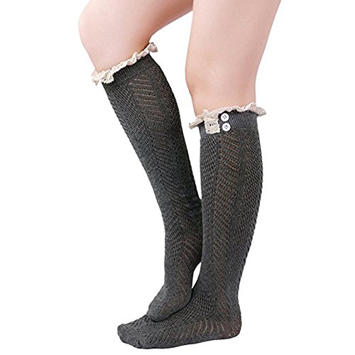 -. Title : Song Women's Leg Warmers Lace Trim Boot Socks Button Knit Knee High Crochet