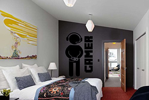 Gamer with Controller Quote nursery Decal Sticker Wall Vinyl Art Design Gamer Cool Funny Game Room for kid/livingroom