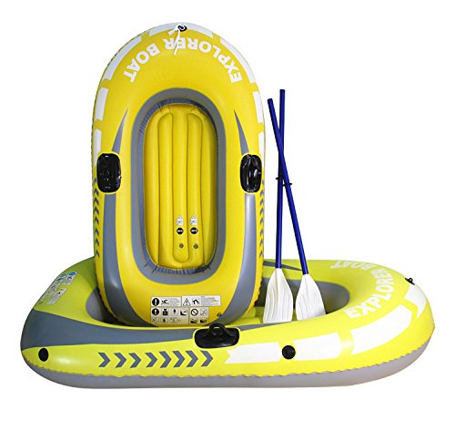 -. Feature : Portable Folding: The ship is inflatable, when you don't use it, you can deflate it and fold it up and easy to carry. / Directional Stability: Removable skeg for directional stability. / Materials: Made from PVC plastic, which is eco-friendly, thickened and durable. / Easy to Use: Open the switch and inflate it, can fill air in a few seconds, then tighten the seal, you can float it in water. / Increased Visibility: In case of emergency, bright yellow color helps visibility.
