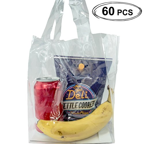 Katgely Loop Handle Bag With Insert - Plastic Bags with Handles Clear Plastic - Reusable Bag for Groseries or Other Merchandise - Pack of 60