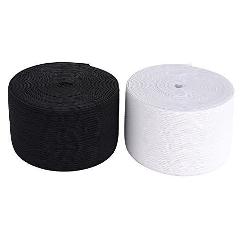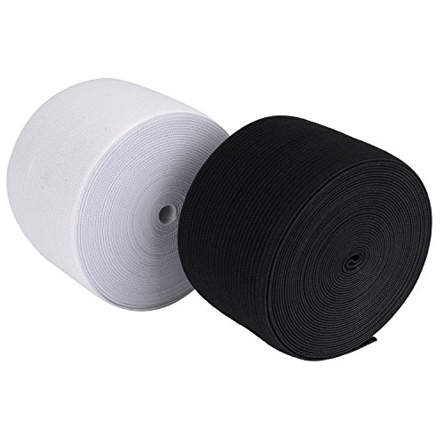 eBoot 2 Inches Wide Elastic Bands Spool Sewing Band Flat Elastic Cord, 5.5 Yard, White and Black, 2 Pieces