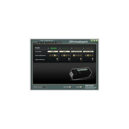 Studio : Sonuus Publisher : Sonuus Binding : Electronics Product Description The i2M musicport is the new way to connect your musical instruments to your computer. It combines a high-impedance audio interface that won't suck the tone from your instrument, with very fast, low-latency, monophonic MIDI conversion that doesn't require special pickups to be mounted onto your instrument.Designed particularly for guitar and bass, it works with most musical instruments including the human voice. Now you can record great-sounding tracks and play synthesizers and samplers how you have always wanted to: by using your favorite instrument.Using class-compliant USB drivers built into your computer's operating system, and with no special instrument set up required, the i2M musicport offers a true plug-and-play experience for all musicians. 0