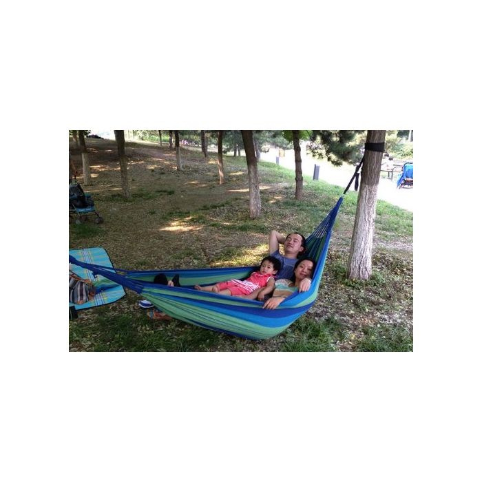 원본상품명: OUTDOOR EX 2人用 耐荷重 200kg 布製 ハンモック ?用ポ?チ 補?? S字フック 付 ストライプ(ブル?)