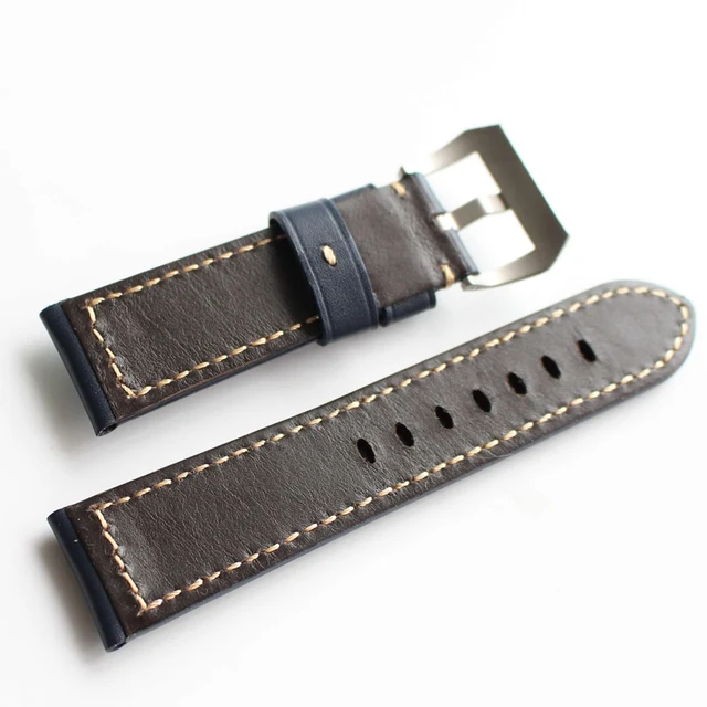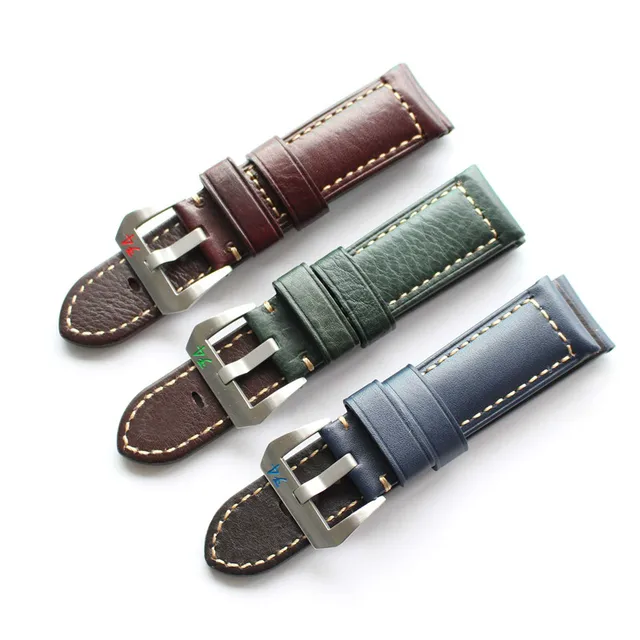 | [해외]TJP 수제 24 미리메터 26 미리메터 블루 그린 브라운 이탈리아 빈티지 정품 가죽 손목 시계 스트랩 Pam 큰 파일럿 시계 |