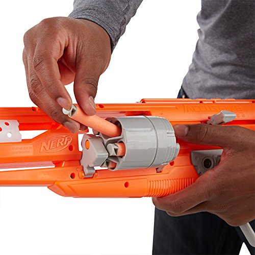 -. Feature : • Part of the AccuStrike series • Comes with 10 darts designed for greater accuracy • Bolt-action blaster with revolving, 5-dart easy-loading drum • Includes blaster, bolt (2 pieces), 10 darts, and instructions.