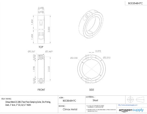 Climax Metal 2C-200-Z Two-Piece Clamping Collar, Zinc Plating, Steel, 2" Bore, 3" OD, 11/16" Width