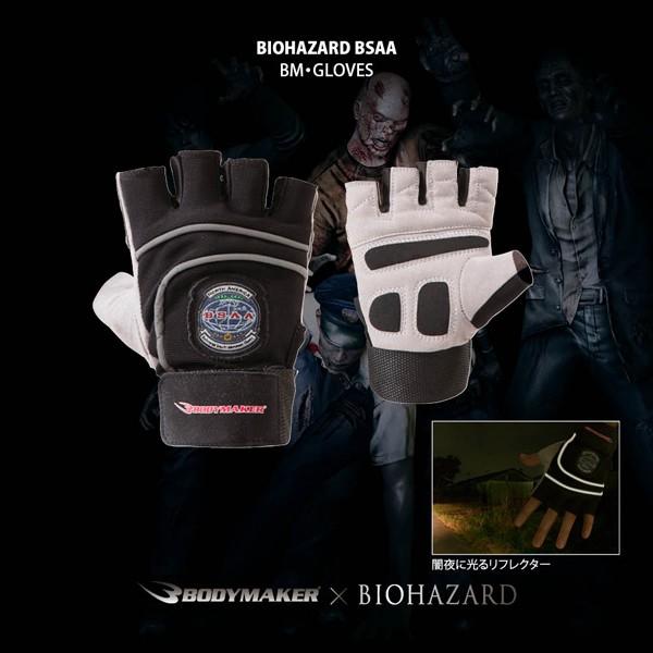 最強格闘スポーツブランド【BODYMAKER】と最怖のホラーゲーム【BIOHAZARD】の天下無双のコラボ企画!バイオハザード世界観をスポーツメーカーのノウハウを詰め込んで具現化したトレーニンググローブが新登場!BIOHAZARFD(バイオハザード)の世界観をリアルに具現化し、アクションシーンを想定したウエアを、スポーツブランド「BODY MAKER(ボディメーカー)」がスポーツメーカーのノウハウを詰め込み込んで開発し限定発売! 全ラインナップは、BIOHAZARDシリーズ内組織「S.T.A.R.S.」「BSAA」「Umbrella」の世界観とリンクさせ、特殊部隊としてのイメージを具現化したスポーツインナー、スポーツウエア、メッシュキャップ、バックパック、トレーニンググローブなど全11種を発売! 幅広いラインナップで世界中のBIOHAZARDファンのスポーツシーンにマッチングできるデザインと機能性になっています。