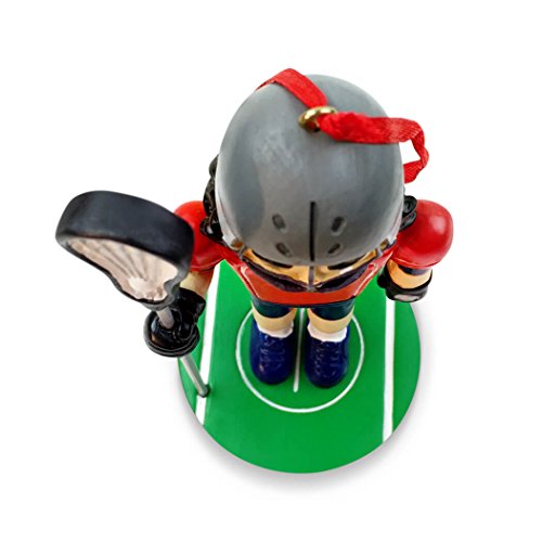 HANDCRAFTED FIGURE! This beautifully detailed hand-sculpted Lacrosse Male Nutcracker Resin Christmas Ornament is hand painted and measures approximately 4" high. From the smiling face to the lacrosse stick, gloves, and helmet, you'll love the impressive level of detail on this adorable lacrosse nutcracker ornament! This fun nutcracker is complete with a ribbon tie so that hanging this little lax player on your tree will be a breeze!