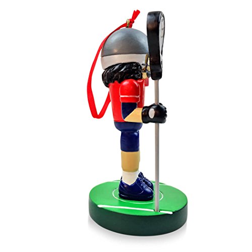 VERSATILE DISPLAY! Whether you love covering your Christmas tree with ornaments or would rather show off your seasonal decorations on a shelf or desk, this Lacrosse Male Nutcracker Resin Christmas Ornament allows you to display it however you see fit! Each ornament comes with a ribbon for hanging from a Christmas tree or desk hanger, and will also stand flat on its base just like a traditional nutcracker! Please note that this nutcracker is decorative only and is not a functional nutcracker.