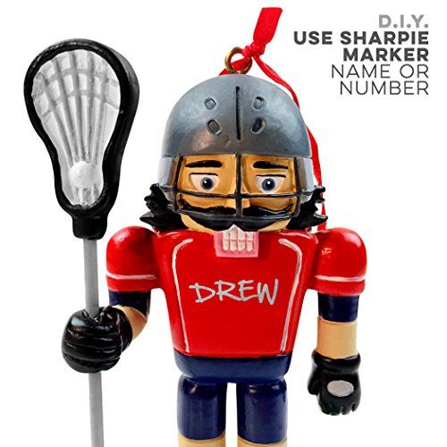 EASY TO PERSONALIZE! Want to add a special touch to this already awesome Lacrosse Male Nutcracker Resin Christmas Ornament? Grab a fine point permanent maker and get ready to customize! This nutcracker's uniform is designed for you to add a name, number, and any other fun details you'd like to include. You can even customize one for every member of your lacrosse team!