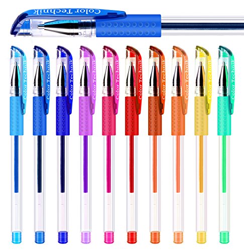 - ★ COLOR TECHNIK GEL PENS: Will Make Your Pictures Sparkle & Shine, Have a Smooth Ink Flow For Smoother Coloring & Writing. Strong Durable Lead-Free Tips that produce perfect lines, Tip size 1.0mm ★ COMFORT GRIP: Color and Doodle away the stress of the day with ease, each pen is fitted with Color coded comfort grip.