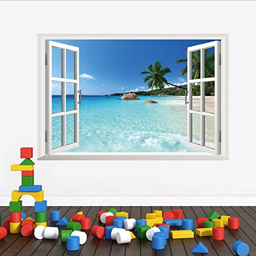-. Title : BestGrew® 3D Sea view false windows the wall stickers decals decor Art DIY Wallpaper Wall Murals wall art Mural Art Decoration