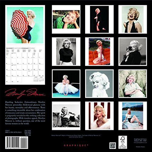 -. Binding : Calendar -. Brand : Graphique -. EAN : 9781477025222 -. Edition : 16m Wal -. Feature : Size: 12" x 12" format / Plan ahead with a 4-month preview page for 2018 / Each page includes before & after preview months / Includes public & culturally significant holidays / 4 languages: English, French, Spanish & Italian -. ISBN : 1477025227 -. Label : Graphique de France -. Manufacturer : Graphique de France -. Model : CY6117 -. MPN : CY6117 -. NumberOfItems : 1 -. PackageQuantity : 1 -. PartNumber : CY6117 -. ProductGroup : Office Product -. ProductTypeName : OFFICE_PRODUCTS -. PublicationDate : 2016-07-15 -. Publisher : Graphique de France -. Studio : Graphique de France -. Title : Graphique 2017 Marilyn Monroe & 8482, 12" x 12", Wall Calendar (CY6117)