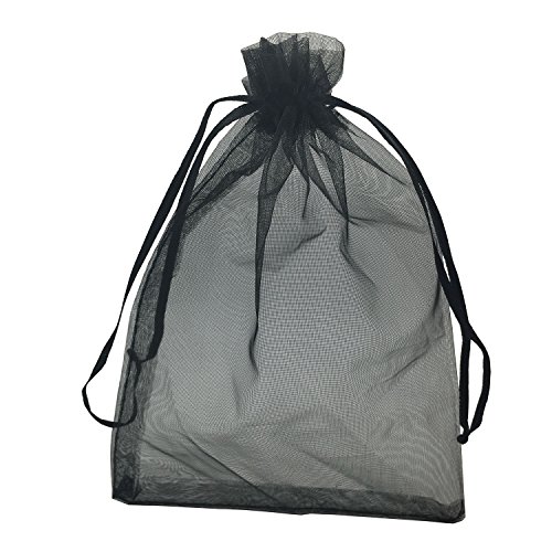 YIJUE 100pcs 5x7 Inches 13x18cm Drawstrings Organza Gift Candy Bags Wedding Favors Bags (Black)