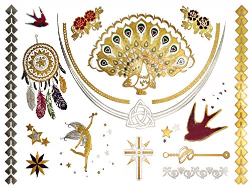 Terra metallic tattoos are glamorous and fun - easily customize your own unique style! Apply our shimmer temporary tattoos anywhere on your body: ankle, wrist, back, chest, arm, nails, shoulder, forearm, hands and more.