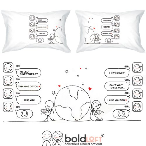 BOLDLOFT Wish You Were Here Couples Pillowcases-Long Distance Relationships Gifts, Long Distance Gifts for Couples, Anniversary Gifts Gifts for Him for Her, His and Hers Gifts, LDR Gifts