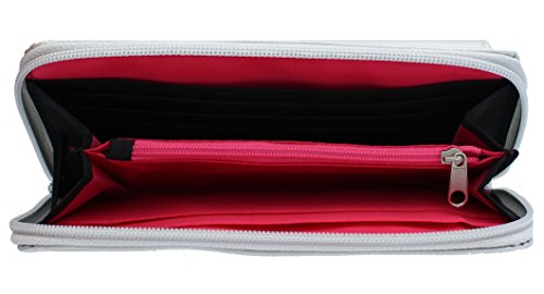 Zip around entry for easy access with an additional 6 card slots, 3 bill pockets, and a large section that's divided by a zippered coin pouch