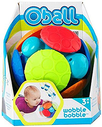 -. Feature : Shake to make vibrating ball roll & wobble on the floor in different directions with silly sounds / Bold colors & shapes with multiple textures stimulate the senses and add to its entertainment value / Requires 3 AA Batteries (included) / Approximately 5" in diameter