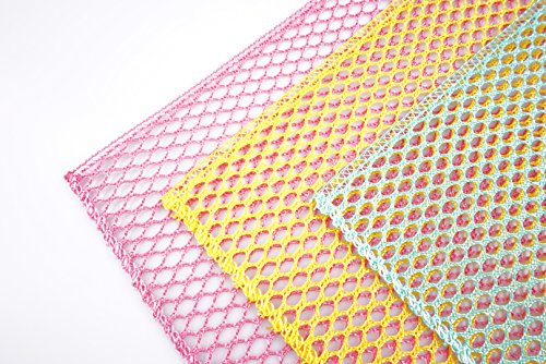 - FOOD RINSES OUT EASILY: Even eggs and melted cheese. The large hole patterns in the rags allow food to wash out. Nice and clean.