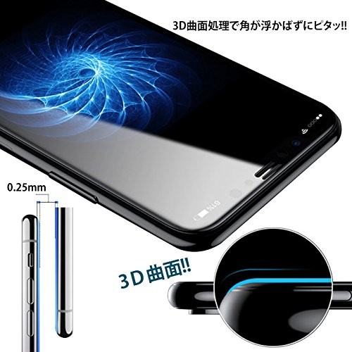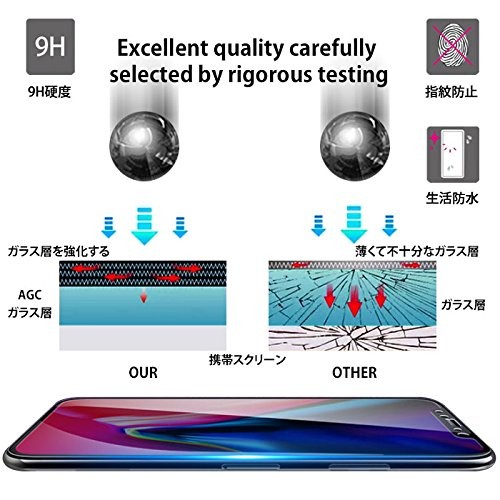 ブルーライト カット / 湾曲 対応 / 硬度 9H / 3D Touch 対応 / 油分・汚れ防止加工 / 撥水加工 / 気泡防止 気泡ゼロ / 飛散 防止加工 / ラウンドエッジ 加工 / 自動 吸着 シリコン 加工 / 高 透過率 / 指紋防止 加工 /日本旭硝子素材採用で業界最高クラス9H硬度(ナイフよりも硬い)の高品質な強化ガラスなので、日常的な使用範囲内では傷つけることはありません。また高い透過性、超薄型設計で、汚れも防ぎます。