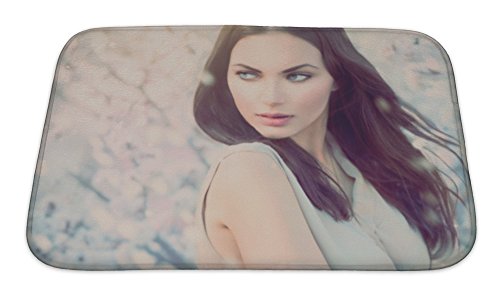Gear New Fashion Girl Outdoor Portrait in Blooming Trees Beauty Spring Romantic Woman in Flowers Sensual La Bath Rug Mat No Slip Microfiber Memory Foam