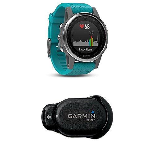 ()/Cycling Wheel Sports/Accessories/DIRECT FROM USA/Garmin Fenix 5S - Silver with Turquoise Band and Temperature Sensor for the Fenix Outdoor Watch